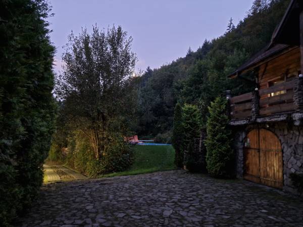 Ładny dom górski, wybudowany w 2007 roku, otoczony drzewami, 3 km od centrum, spokojne, słoneczne położenie na wzniesieniu, w lesie.